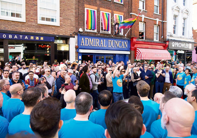 The London Gay Men’s Chorus outside the Admiral Duncan pub
