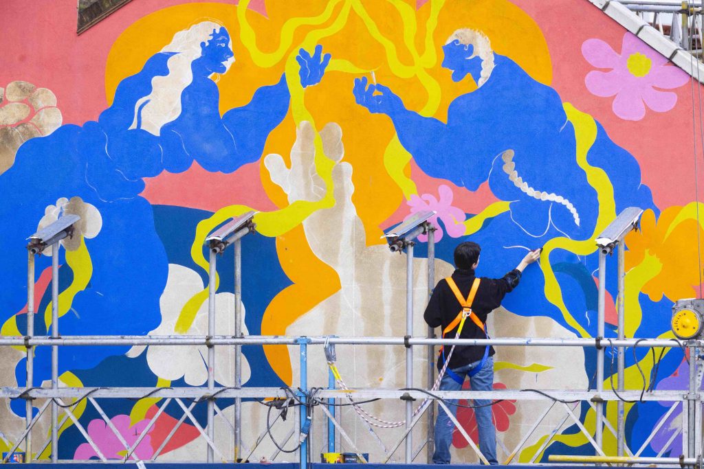 “The mural design recognises the women living in the area who powered the garment trade in the 19th/20th centuries, as well reflecting contemporary Fitzrovia as a place of discovery, dynamism and connection. I can’t wait to see the impact on the streetscape and see how people react to the new artwork”