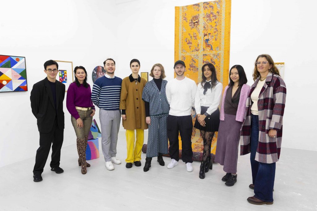 Greg Hutcheson, The Langham Estate, Nika Kirpichenko and Constantin Botezat from Eclectic Gallery, Oliwia Bober, Lydia Allain Chapman, Curator, Charlie Pannell, ST.ART Gallery, Taya De La Cruz, Bbblob and Lina Barouch at The Artist’s Corner curated by Fitzrovia Quarter as part of London’s art season [David Parry/PA Media]