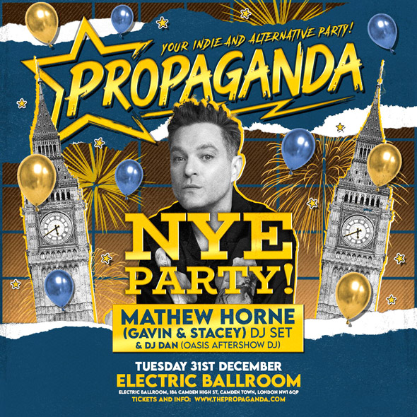 • Propaganda London’s NYE Party, Electric Ballroom features a special guest DJ set from Gavin and Stacey’s Mathew Horne and DJ Dan (Oasis Aftershow DJ).Expect indie and alternative tunes all night long.